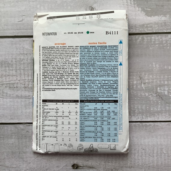 Butterick 4111 Sewing Pattern Baby Infant Bunting Hat Blanket Etsy